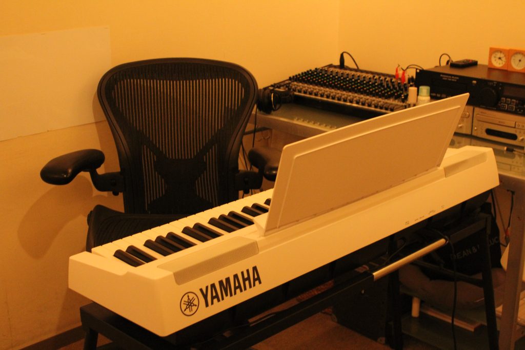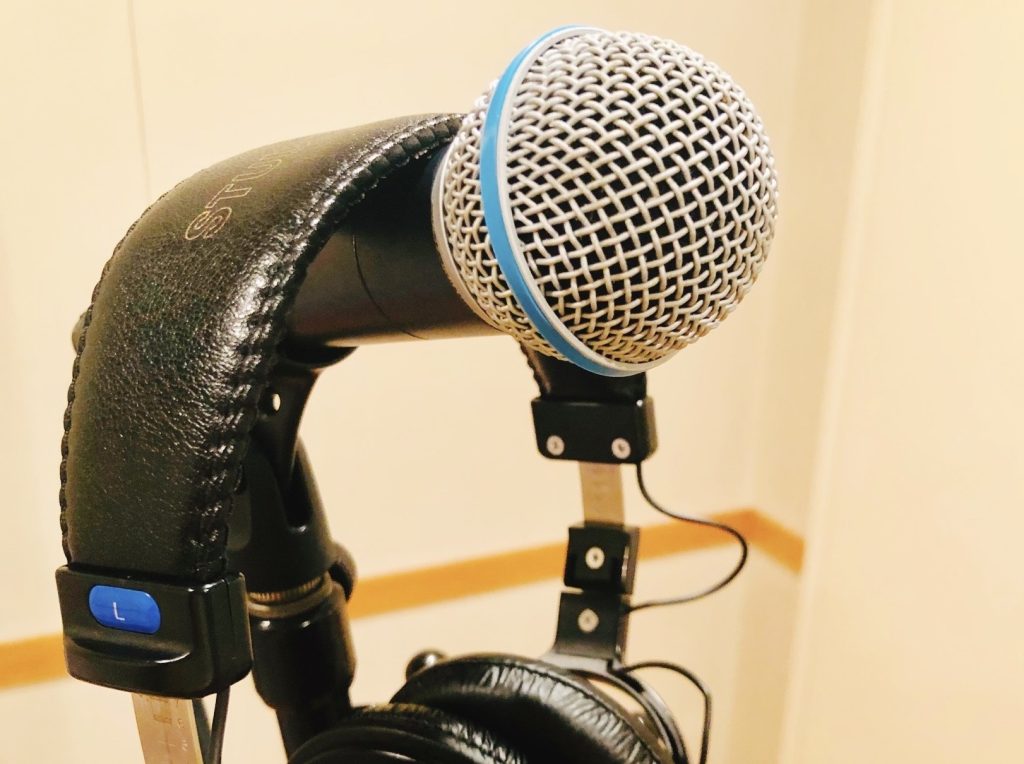 歌う際は、マイクを使い、ヘッドホンをつけてモニターします。